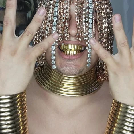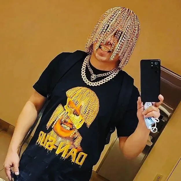 ويحرص مغني الراب على ارتداء الذهب في رقبته ويده ، ويطلي أسنانه بماء الذهب ، مما يجعله الأول في العالم الذي يقدم على مثل هذه التصرفات الغريبة.