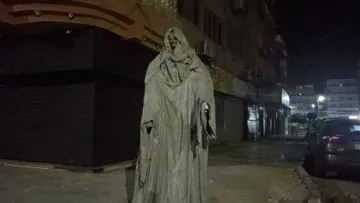 ظهر تمثال مرعب في أحد شوارع الإسماعيلية يجسد شبح الموت المشهور في أفلام الرعب الأمريكية، حيث أن التمثال عبارة عن رجل مغطى بالأوشحة، ورأسه صغير.