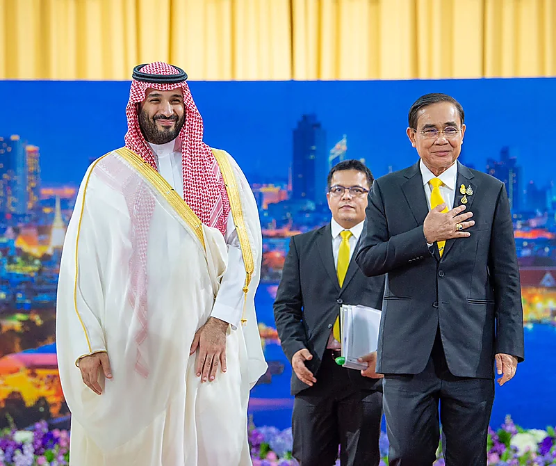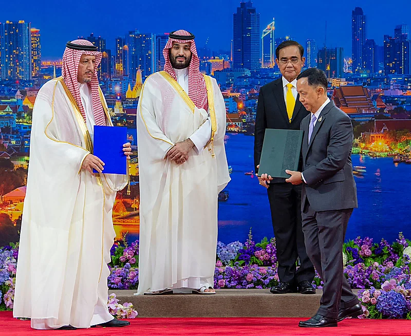 وشهد اللقاء الذي جمع بين ولي العهد، ورئيس وزراء تايلند عقد جلسة مباحثات وكذلك تبادل عدد من مذكرات التفاهم بين البلدين.