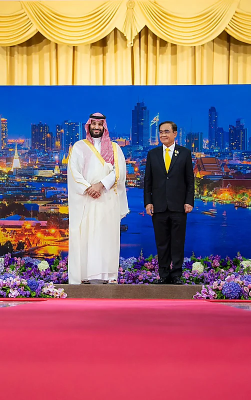 التقى صاحب السمو الملكي الأمير محمد بن سلمان بن عبدالعزيز آل سعود ولي العهد رئيس مجلس الوزراء، برئيس الوزراء التايلندي، الجنرال برايوت تشان أوتشا.