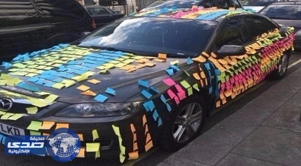 وكانت السيارة استُهدفت يوم الأحد الماضي في هامرسميث شمالي لندن، ولم يعرف بعد إذا كان صاحبها قد شاهد الأعداد الكبيرة من أوراق الملاحظات الملونة وهي تغطي السيارة، بحسب صحيفة ديلي ميل البريطانية.