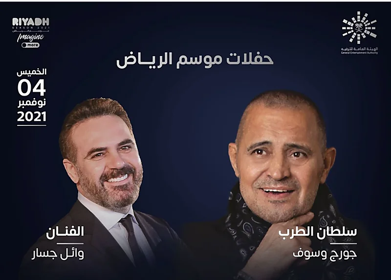 يستعد الفنان اللبناني وائل جسار والنجم السوري جورج وسوف، لإحياء حفلا غنائيا ضخما على مسرح أبو بكر سالم، يوم الخميس المقبل، ضمن فعاليات موسم الرياض.