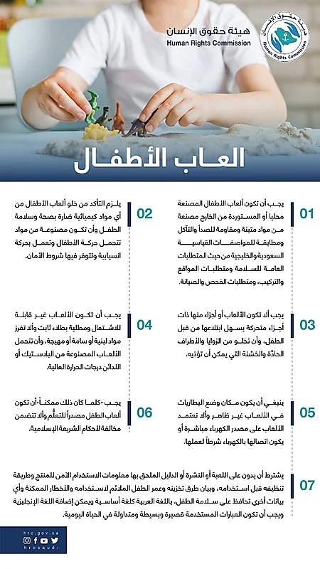 ورصدت هيئة حقوق الإنسان بعض المواصفات التي يجب أن تتوفر في ألعاب الأطفال :