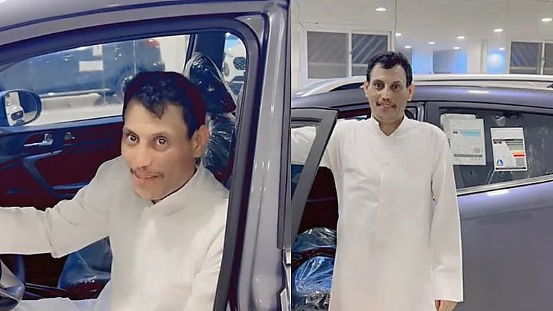 وظهر مدين في مقطع فيديو وهو يستلم السيارة من آل مغني ويبدو على ملامحه السعادة والفرحة بالهدية المقدمه له.