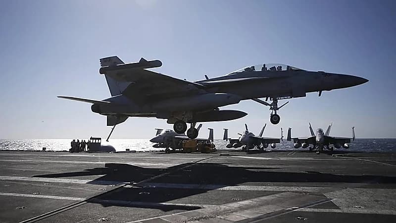 سقوط طائرة إف 18 من على متن حاملة طائرات أمريكية بالبحر الأحمر