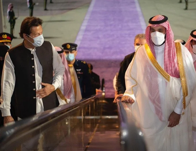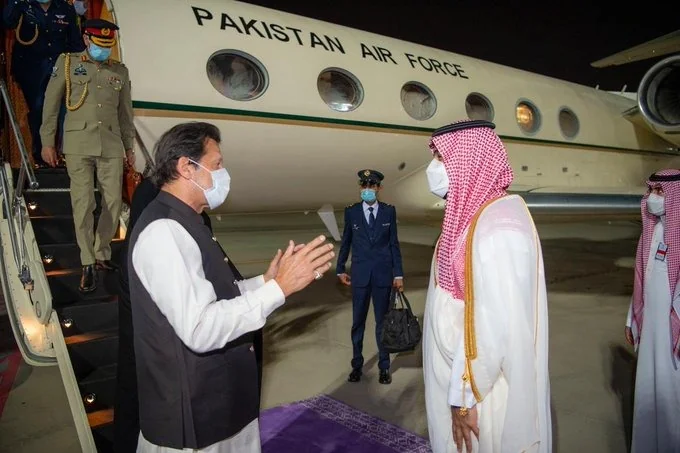 وصل جدة اليوم دولة السيد عمران خان رئيس الوزراء بجمهورية باكستان الإسلامية في زيارة رسمية للمملكة. وكان في مقدمة مستقبليه لدى وصوله مطار الملك عبدالعزيز الدولي صاحب السمو الملكي الأمير محمد بن سلمان بن عبدالعزيز ولي العهد نائب رئيس مجلس الوزراء وزير الدفاع الذي رحب به وبمرافقيه في المملكة العربية السعودية.