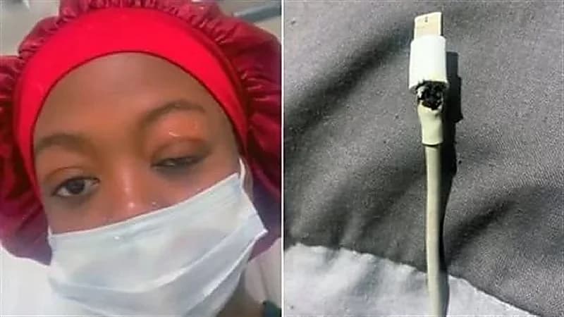 تعرضت فتاة لحادث مؤلم، حيث انفجر شاحن الهاتف في وجهها وتطاير شرار في عينها، مما تسبب في إصابتها بعمى جزئي.
