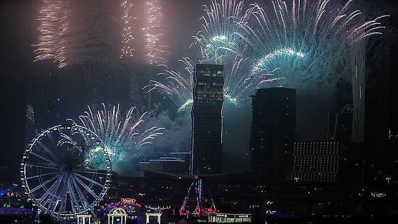 ووثق مقطع فيديو لحظة الاحتفال بانطلاق العام الجديد، حيث زينت الألعاب النارية سماء العاصمة.