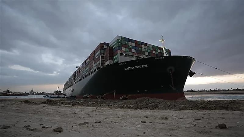 شاهد.. "السرعة" سبب جنوح السفينة بقناة السويس