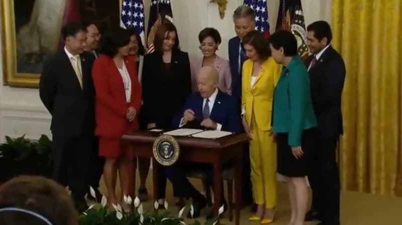 وقال "بايدن" أثناء توقيعه: "أتساءل لماذا يفعلون ذلك دائما عندما يحين دوري لتوقيع الوثائق، فهم دائما يعطونني قلما واحدا، لكنني شاهدت أوباما يمنح من 7 إلى 9 أقلام".