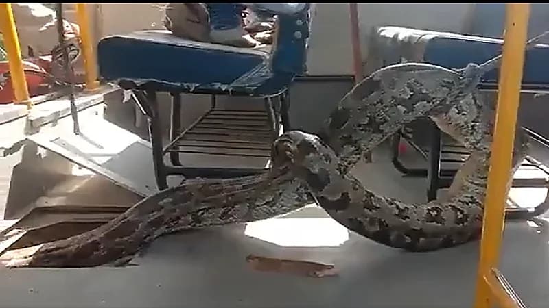 شاهد .. ثعبان عملاق بطول يتجاوز 3 أمتار داخل حافلة مدرسية
