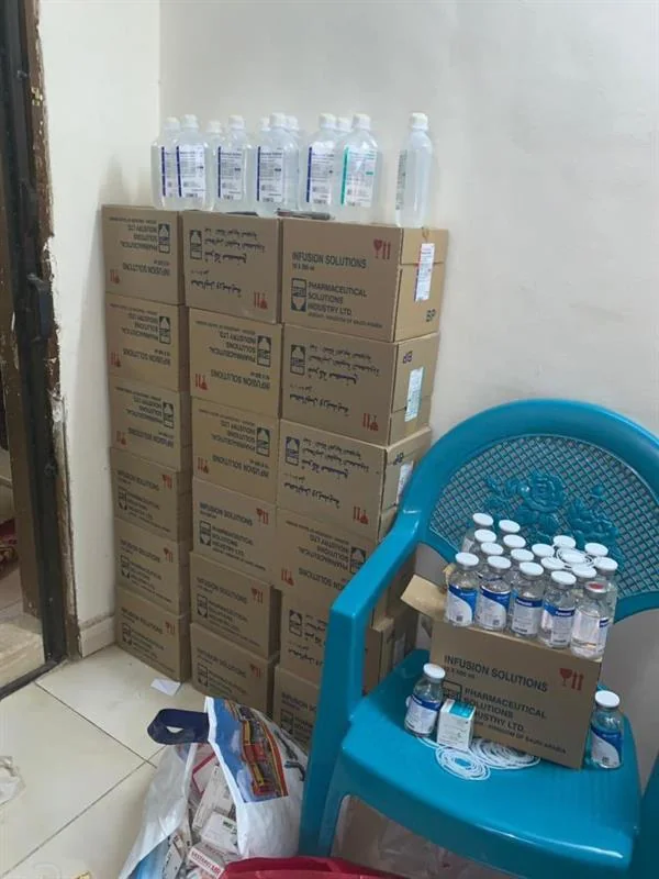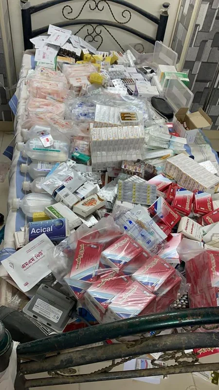 وظهر في صور من داخل العيادة المخالفة، أجهزة قياس ضغط ومغذيات وأبر بكميات كبيرة وأدوية مختلفة الأنواع وحبوب طبية.