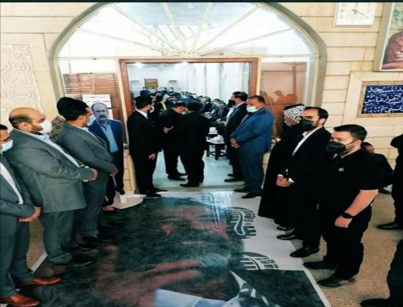شاهد.. صورة صدام حسين مفروشة على أرضية مجلس عزاء القاضي الذي حاكمه