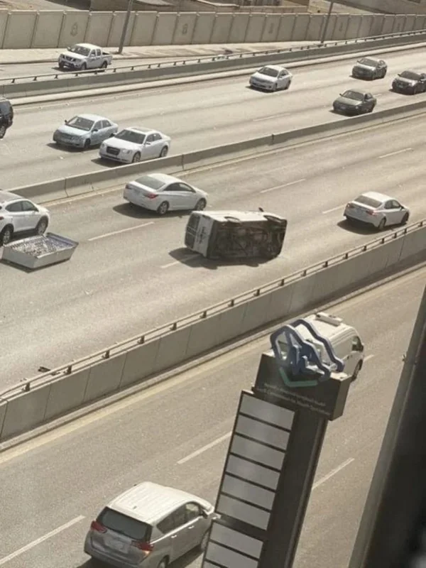 انقلبت مركبة بشكل مفاجئ خروج بسبب سياح من مناهل لتصريف مياه الأمطار بشارع فلسطين بجدة.