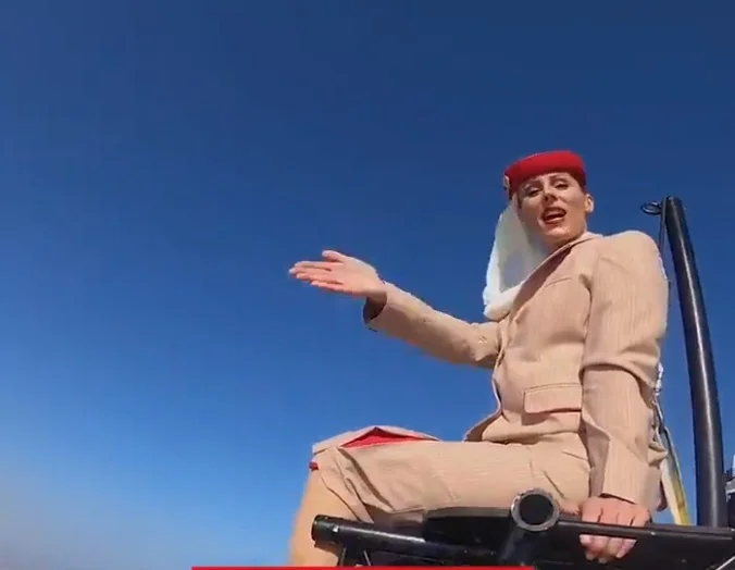 لفت ظهور امرأة وجلوسها على قمة برج خليفة في الإمارات، مرتدية زي مضيفة طيران، الأنظار في الساعات الماضية، إذ تبين أنها بطلة إعلان شركة طيران الإمارات الجديد.
