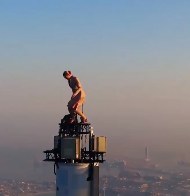 صور.. تفاصيل ظهور امرأة على قمة برج خليفة