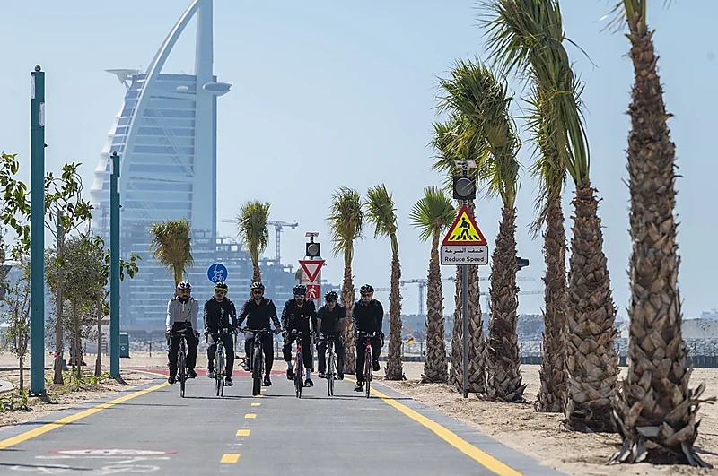ونشر الشيخ محمد بن راشد صورًا من جولته التفقدية لمسار الدراجات، معلقا: "ضمن متابعاتي الميدانية اليوم تفقدت مسار الدراجات الجديد الملاصق لشاطيء جميرا".