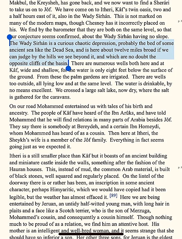 صور..رحالة إنجليزية: وادي السرحان بالجوف كان مجرى بحر قديم كالبحر الميت