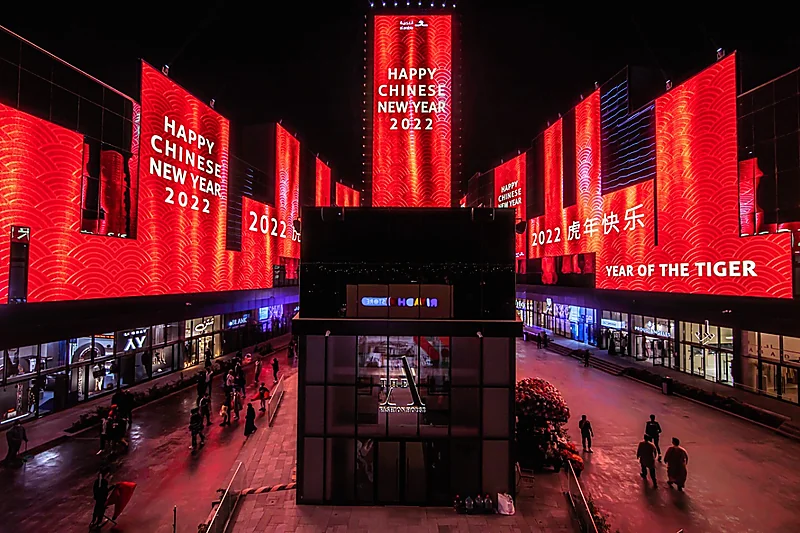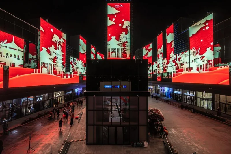 صور.. شاشات البوليفارد تضيء باللون الأحمر احتفالاً بالسنة الصينية الجديدة
