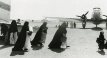 وثقت صور نادرة مواطنات أثناء نزولهن من الطائرات في ساحة المطار قبل أكثر من 65 عاما، وذلك بصحبة عدد من أطفالهن.