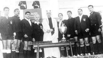 صورة تذكارية نادرة للملك فيصل يحيط به مجموعة من حكام كرة القدم