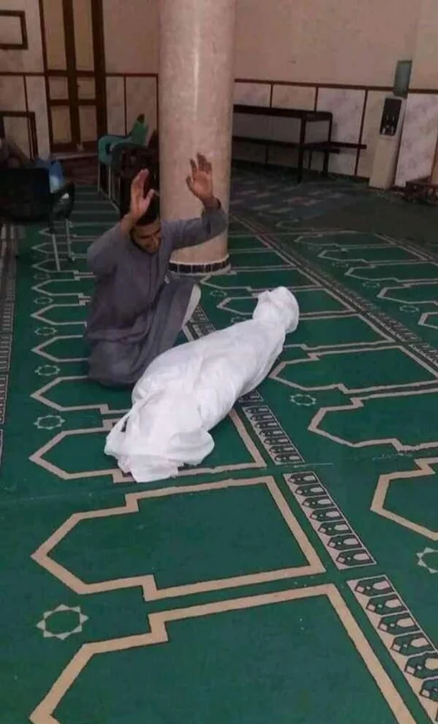انتشرت صورة مثيرة للجدل داخل مسجد العطا في محافظة المنيا، لشخصين أحدهما ملفوف داخل كفن والآخر يقوم بخنقه، مما أثارت غضبا شديدا.
