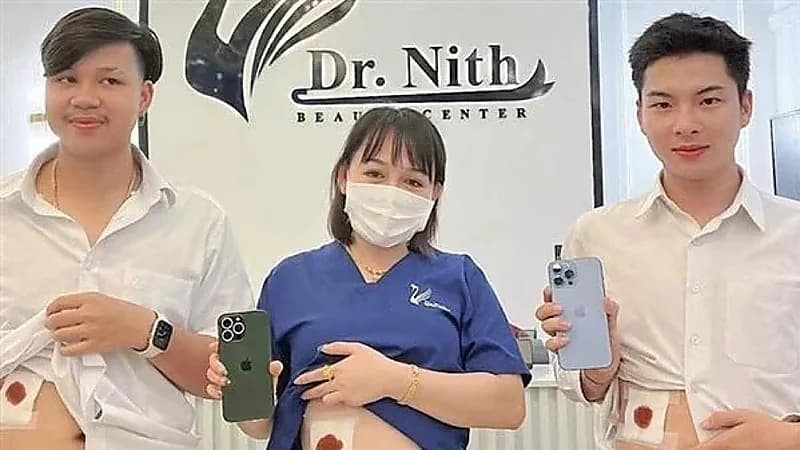 وشارك مركز دكتور نيث للتجميل في فينتيان، صورة الثلاثي وهم يحملون هواتف ذكية جديدة مع ندوب جراحية واضحة.