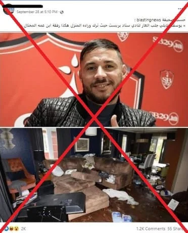 لكن بالتحقق تبين أن هذه الصورة لا علاقة لها بمنزل "بلايلي"، بل هي لمنزل تعرض للسرقة في كندا، بحسب فرانس برس.