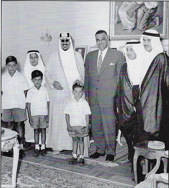 كشفت صورة نادرة عن الملك سعود - رحمه الله - ومعه أبنائه الأمراء: محمد، منصور، عبد الإله، في منزل الرئيس المصري الراحل جمال عبد الناصر.