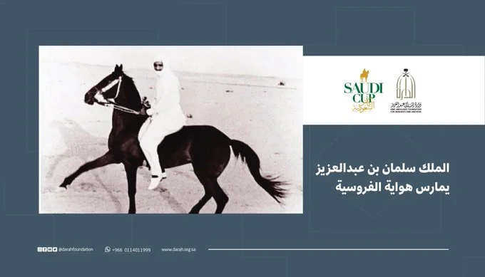 استعرضت دارة الملك عبدالعزيز صورة قديمة لخادم الحرمين الشريفين، الملك سلمان عبدالعزيز، وهو يمارس هواية الفروسية.