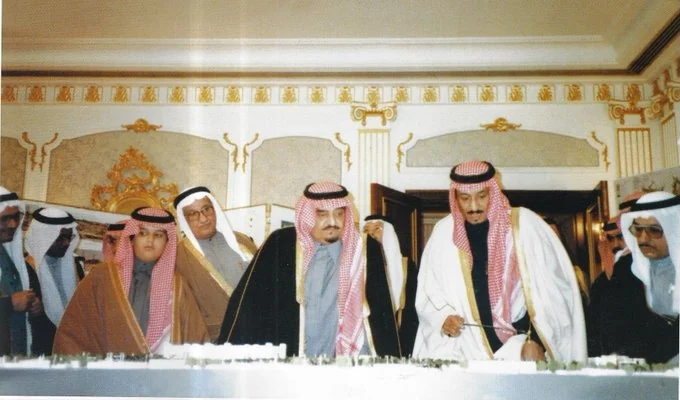 كشفت صورة نادرة عن موثق تاريخي للملك فهد – طيب الله ثراه – أثناء إستماعه للملك سلمان – حفظه الله – حينما كان أميراً لمنطقة الرياض عن مشروعات في مدينة الرياض .