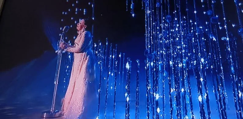 وظهرت نجاة على مسرح بكر الشدي، وشدت بأغنية "عيون القلب" وسط ترحيب وتصفيق حار من كل الحضور، وذلك بعد عرض فيديو يضم شهادات عنها وصورا من مسيرتها الفنية المميزة