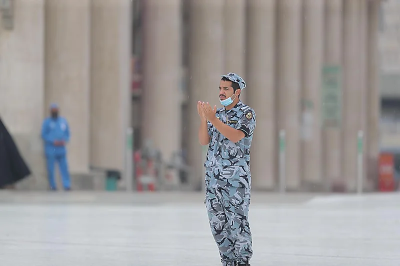 وقد رصدت عدسة مصور " صدى " الأستاذ/ عبدالعزيز حامدي قاصدي بيت الله الحرام خلال العشر الوسطى من رمضان وكذلك جهود رجال الأمن في توجيه المعتمرين والمصلين والإلتزام بتطبيق الإجراءات إحترازية للحد من تفشي فيروس كورونا المستجد " كوفيد 19 ” وكذلك وسط هطول أمطار على مكة المكرمة خلال الأيام الماضية.