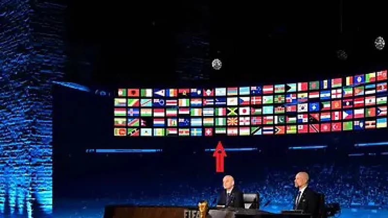 ظهر علم سوريا الجديد خلف جياني إنفانتينو، رئيس الاتحاد الدولي لكرة القدم، أثناء حديثه في كونغرس "فيفا" والإعلان عن الدول المستضيفة لكأسي العالم 2030 و2034.