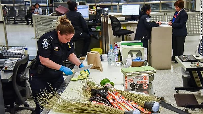 وأوضحت سبب ذلك لأن المسافرين الذين يجلبون المنتجات الغذائية إلى الولايات المتحدة قد ينقلون الآفات والأمراض إلى البلاد عن غير قصد .