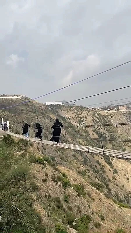 فتيات يتورطن في جسر الباحة المعلق .. فيديو