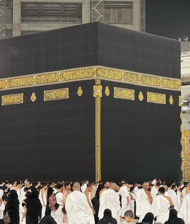 فوز الشطي وزوجها من أمام الكعبة..صورة