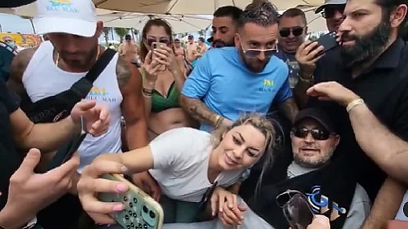 ظهر الفنان السوري جورج وسوف وسط جمهوره ومعجبيه في أحد الشواطئ، على كرسي متحرك بينما يتواجد عدد كبير من معجبيه وجمهوره بجواره ليلتقط الصور التذكارية معه.