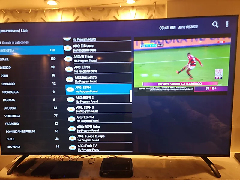 وأظهرت صور شاركها الإعلامي عبدالعزيز أبو حيمد ، انقطاع بث قناة "ARG ESPN" أثناء نقل مباراة فلامنغو وفاسكو دا جاما ، لتعلن مذيعة القناة خبل انتقال ميسي إلى الدوري السعودي .