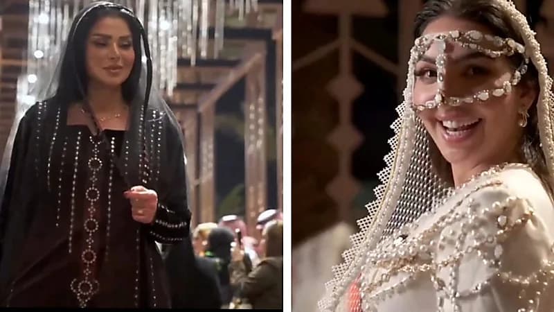 أما هبة الحسين، فاختارت إطلالة مستوحاة من تاريخ البحارة على ساحل البحر الأحمر، وتألقت مرمر بتصميم مرصع بكريستالات مستوحى من الجُبة في منطقة الباحة، فيما ارتدت ميلان السبيعي فستانًا يعكس تفاصيل الزخارف في مدائن صالح.
