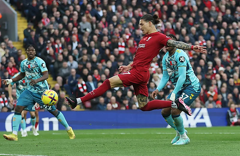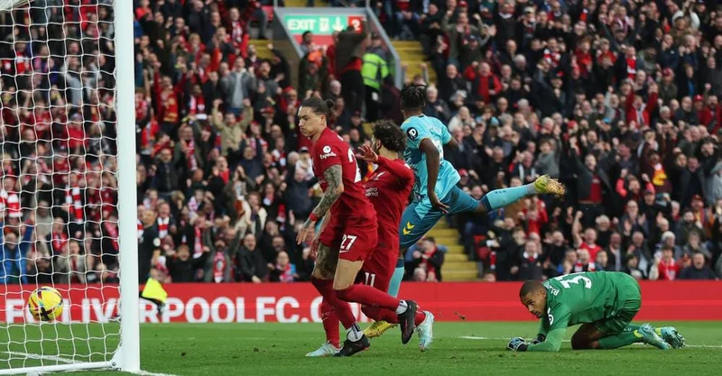 واستعاد فريق ليفربول تقدمه بالهدف الثاني أمام ساوثهامبتون من خلال داروين نونيز في الدقيقة 21 ثم سجل الهدف الثالث بالدقيقة 42.