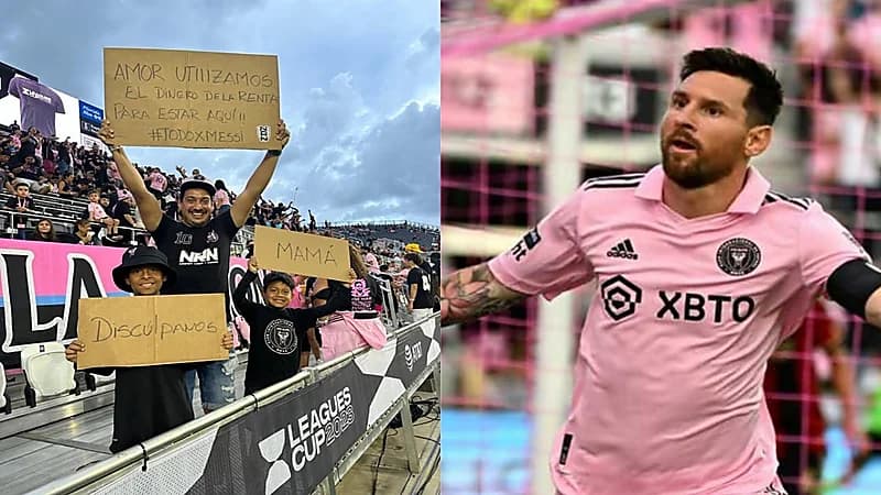 وكتب الرجل في اللافتة الموجهة إلى زوجته: "عزيزتي، لقد أنفقنا مبلغ الإيجار لنكون هنا! كل هذا من أجل ميسي"، بينما قال الأطفال "آسفون يا أمي".