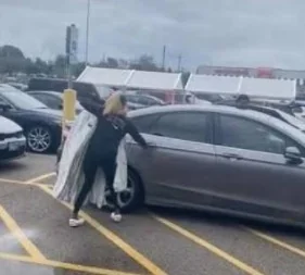 وحاولت المرأة فتح الباب الخلفي للسيارة بينما ينطلق السائق بسرعة ليتركها وراءه بالمسروقات ليتم القبض عليها في النهاية.