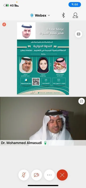 رعى مدير تعليم المخواة علي الجالوق فعاليات الندوة الحوارية التي أقامها قسم الإعلام والاتصال عن بعد تحت عنوان ( الخطط الدراسية الجديدة .. تطلعات وطن ) بحضور أكثر من 264 مشاركاً ومشاركة .