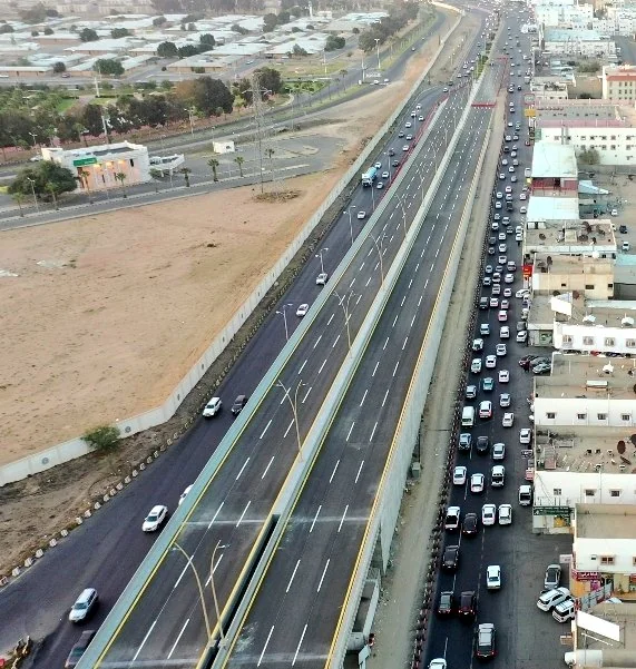 نقل الحركة المرورية للمسارات العلوية لجسر طريق الملك خالد بأحد رفيدة