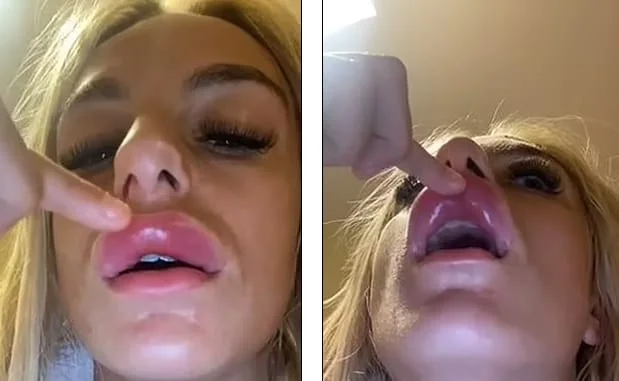 ذهبت فتاة عشرينية إلى مركز تجميل غير متخصص لنفخ شفتيها؛ ليتضاعف حجم شفتها العلوية 3 أضعاف حجهما العادي مقابل دفعها مبلغ قليل من المال.