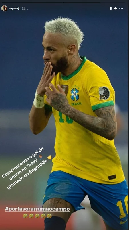 ونشر نيمار صورة له عبر حسابه على "إنستغرام"، من مباراة بيرو التي انتهت بفوز البرازيل برباعية نظيفة، وعلق عليها: "الاحتفال بهدف الأمس على العشب الجميل لنيلتون.. رجاء اصلحوا العشب"، مشيرا إلى ملعب "نيلتون سانتوس"، في العاصمة البرازيلية ريو دي جانيرو.