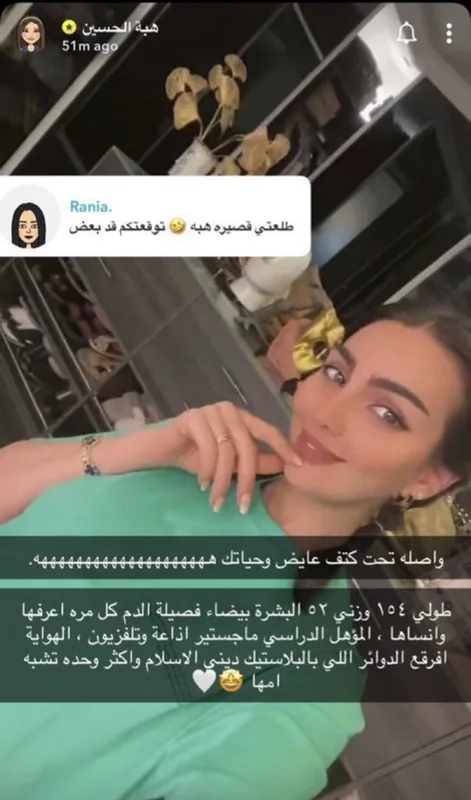 وعلقت "متابعة" على صورة "لهبة" على "سناب شات" قائلة: "طلعت قصيرة هبة.. توقعتكم قد بعض".