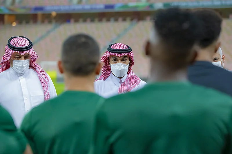 حفز وزير الرياضة الأمير عبدالعزيز بن تركي الفيصل، المنتخب الوطني قبل مواجهة اليابان.