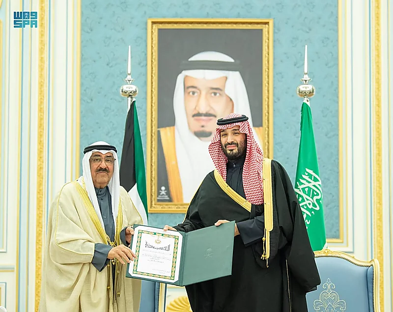 ولي العهد يُقلد أمير الكويت قلادة الملك عبدالعزيز.. فيديو